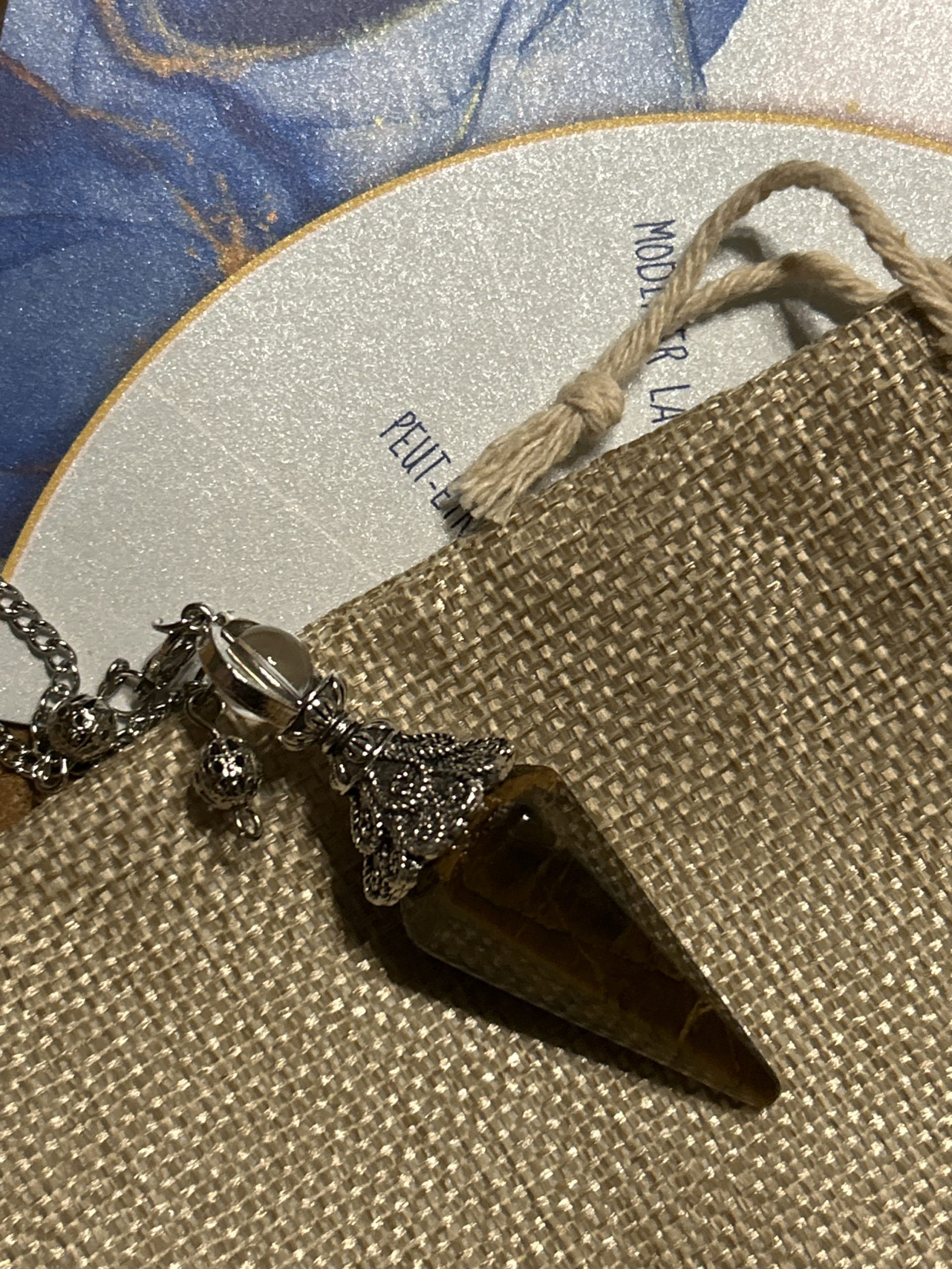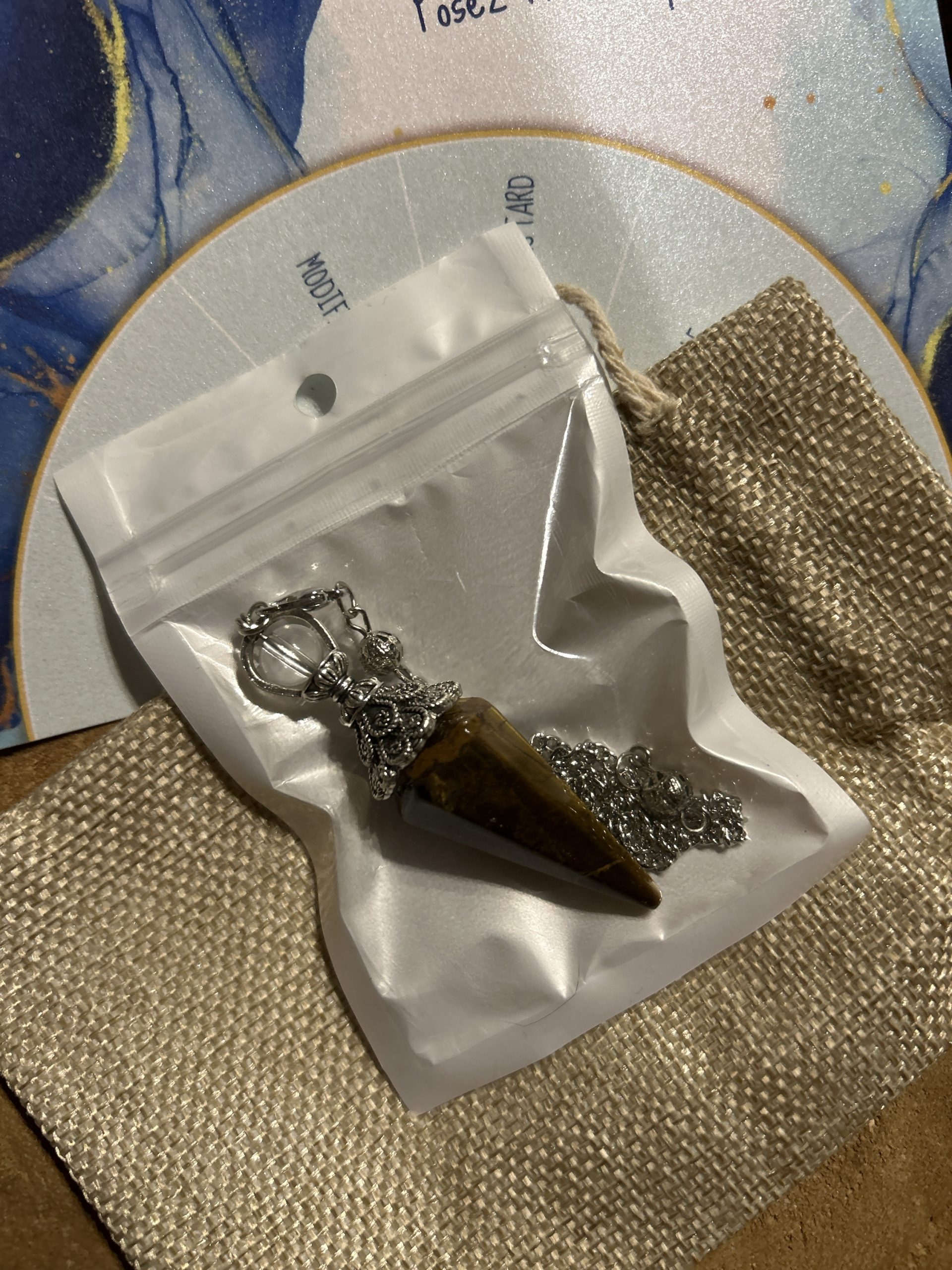 Découvrez la pureté et la beauté de ce pendule en cristal de roche, présenté dans un pochon en lin. Accompagné d’une planche de radiesthésie, ce pendule te permet de poser des questions de manière précise. Les indications claires pour interpréter les réponses – oui, peut-être, refaire la demande plus tard, improbable ou non – te guident efficacement. Au verso, profitez de conseils d’experts pour améliorer votre pratique de la radiesthésie. Laissez-vous inspirer par la pureté du cristal de roche et plongez dans l’univers captivant de la divination avec cet ensemble unique. ✨Livraison gratuite